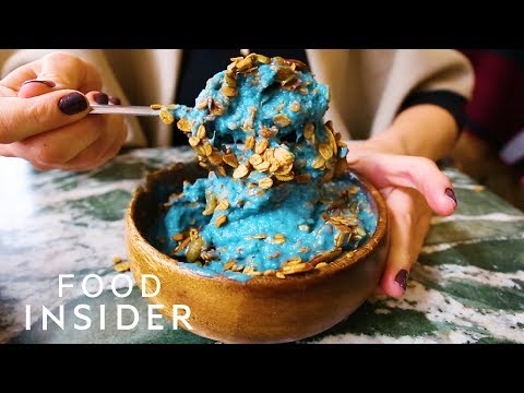 Blue Majik Smoothie Bowl }}- Great White in Venice, California puts a spin on the acai bowl by fusing a smoothie bowl with blue algae. The bowl is made with passion fruit purée, bananas, ...