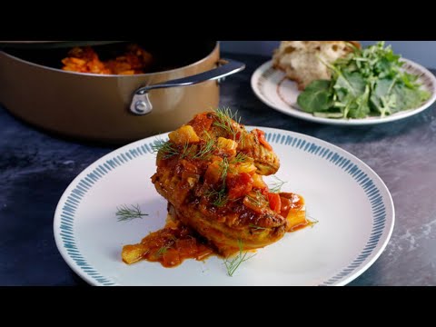 Cast-Iron Skillet Chicken with Fennel, Potato, Onion and Roasted Garlic - Rachael Ray Chicken Provencal - This decadent chicken dinner is the ultimate one-pan meal. For more follow the hashtag #RachaelRayShow.